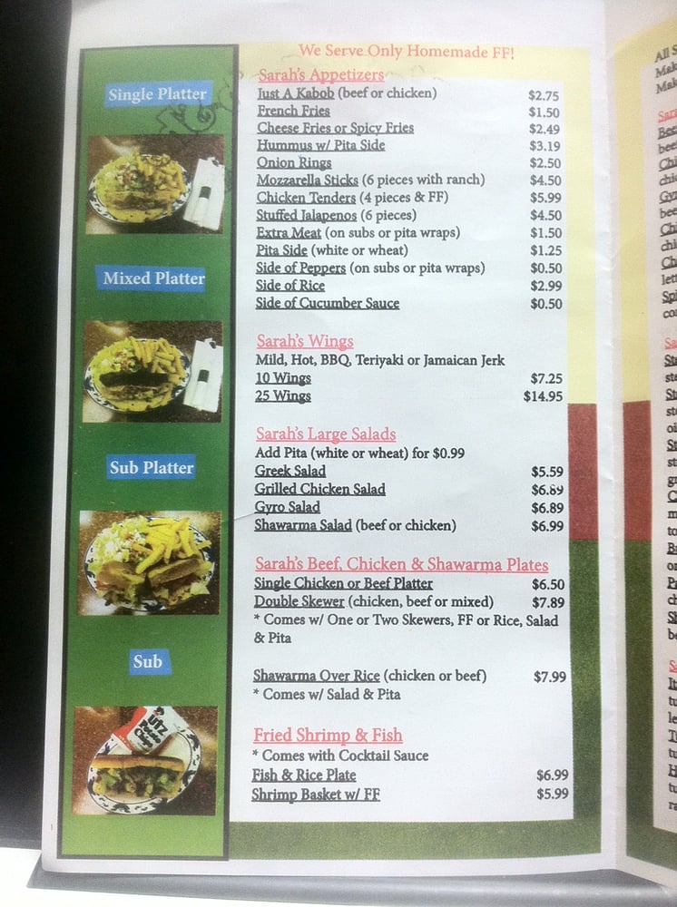 Sarah's Kabob Shop offers a wide range of Mediterranean options, including delicious kebabs, salads, and subs. Their menu features homemade specialties like hand-cut French fries, stuffed jalapenos, and flavorful hummus with pita. Customers rave about the authentic flavors and friendly service at this establishment. The bright and clean interior, along with the fast and efficient ordering system, make for a pleasant dining experience. Reviewers praise the fresh ingredients and well-seasoned dishes, especially highlighting the gyro platter and chicken shawarma. With options for takeout, delivery, and catering, Sarah's Kabob Shop is a versatile choice for a casual meal with friends or family. Enjoy a taste of Lebanon in Greensboro at this must-visit spot.
